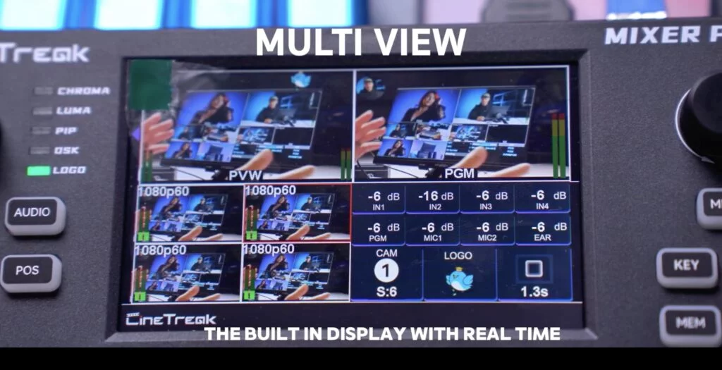 คนที่เคยทำไลฟ์หลายกล้อง หรือควบคุมงานโปรดักชันพร้อมกัน น่าจะเข้าใจดีว่าการต้อง ต่อมอนิเตอร์เพิ่มเพื่อดูภาพ มันทั้งกินพื้นที่ เสียเวลา และเพิ่มความวุ่นวายแค่ไหน แต่ Mixer Plus แก้จุดนี้ได้ตรง ๆ ด้วย หน้าจอ Multi View ในตัว ที่ช่วยให้มองเห็นทุกแหล่งสัญญาณพร้อมกันแบบเรียลไทม์ เห็นทุกกล้อง ทุกซอร์สในจอเดียว ทำให้การตัดสินใจสลับภาพแม่นขึ้น ลดความผิดพลาดระหว่างไลฟ์ และทำงานได้อย่างมั่นใจมากขึ้นอย่างเห็นได้ชัด