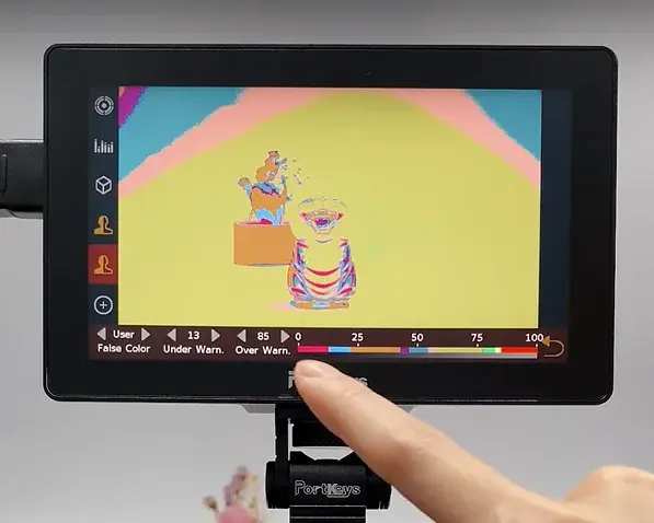 False Color บนจอมอนิเตอร์ PortKeys จะช่วยให้ผู้ใช้สามารถตรวจสอบการเปิดรับแสงได้อย่างแม่นยำราวกับการผ่าตัด ไม่ว่าคุณจะถ่ายทำในสภาพแสงที่ท้าทาย หรือต้องทำงานกับฟุตเทจที่ขาดคอนทราสต์ False Color จะช่วยให้คุณมั่นใจว่าจะสามารถเปิดรับแสงในซีนต่าง ๆ ได้อย่างแม่นยำ โดยไม่ต้องคอยคาดเดาหรือพึ่งสัญชาตญาณ