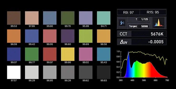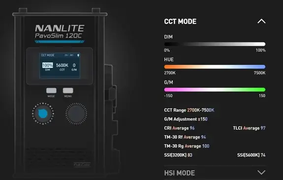 อุณหภูมิสีของแสงเป็นตัวกำหนดว่าแสงจะออกมาเป็นโทนสีใด ไฟแผง Nanlite PavoSlim 120C สามารถปรับอุณหภูมิสีได้ตั้งแต่ 2700K ถึง 7500Kซึ่งครอบคลุมช่วงอุณหภูมิสีของแสงธรรมชาติ โดยสำหรับงานภาพยนตร์โดยทั่วไปจะใช้อุณหภูมิสีอยู่ที่ 5600K ซึ่งเป็นอุณหภูมิสีของแสงแดดกลางวัน อุณหภูมิสีนี้ให้แสงที่สม่ำเสมอและช่วยให้สีของวัตถุปรากฏเป็นธรรมชาติ