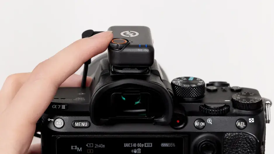ตัวส่ง Transmitter มีแบตเตอรี่ภายใน 85mAh ใช้งานได้นาน 9 ชั่วโมง ตัวรับแบบติดกล้อง Camera-Mount Receiver มีแบตเตอรี่ภายใน 145mAh ใช้งานได้นาน 8.5 ชั่วโมง เมื่อแบตเตอรี่หมด สามารถชาร์จในกล่องชาร์จที่ให้มาได้ใน 1.5 ชั่วโมง หรือชาร์จผ่าน USB-C ใน 1 ชั่วโมง