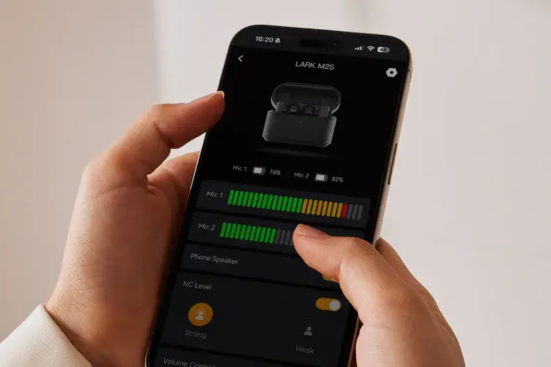 เชื่อมต่อระบบ LARK M2S กับแอป LarkSound เพื่อปรับพารามิเตอร์ต่างๆ เช่น ระดับเสียง, การตัด Noise Cancellation, อัพเดท Firmware หรือตรวจสอบสถานะเสียงแบบ Real-time ทั้งหมดผ่านสมาร์ตโฟน iOS หรือ Android สมาร์ตโฟนยังสามารถเล่นการบันทึกเสียงได้เมื่อเชื่อมต่อกับตัวรับโดยไม่ต้องถอดออก