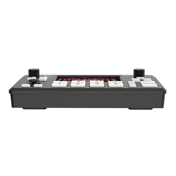 หนึ่งในจุดเด่นที่สำคัญของ Mixer Plus คือหน้าจอขนาด 4 นิ้วที่มีอยู่ภายในตัวเครื่อง ซึ่งสามารถแสดงผล Multi View ได้แบบเรียลไทม์ ทำให้ผู้ใช้งานสามารถเห็นภาพจากแหล่งสัญญาณทั้ง 4 แหล่งพร้อมกันบนหน้าจอเดียว โดยไม่จำเป็นต้องใช้จอภาพภายนอกเพิ่มเติม นอกจากภาพจากแหล่งสัญญาณทั้ง 4 แล้ว หน้าจอยังแสดงหน้าต่าง Program (PGM) และ Preview (PVW) ที่แยกกันชัดเจน ทำให้ผู้ควบคุมสามารถเห็นได้ทันทีว่าภาพใดกำลังถูกส่งออกไป และภาพใดกำลังถูกเตรียมไว้สำหรับการสลับถัดไป