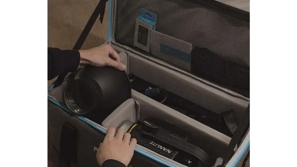 พื้นที่ภายในกระเป๋าได้รับการออกแบบอย่างฉลาด ด้วยการแบ่งช่องเก็บอุปกรณ์อย่างเป็นระเบียบ มีช่องหลักสำหรับวางตัวไฟ LED และช่องเสริมสำหรับอุปกรณ์เสริมต่างๆ เช่น สายไฟ เอแดปเตอร์ หรือ Controller ที่มาพร้อมกับไฟ