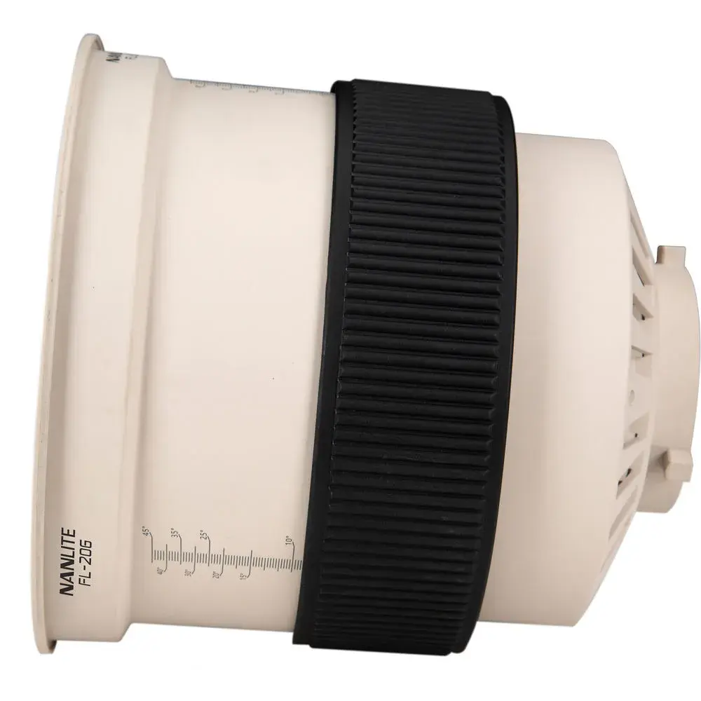 เลนส์ Fresnel แก้วแท้ของ Nanlite FL-20 ให้แสงที่มีคุณภาพเยี่ยม โดยสามารถปรับเปลี่ยนมุมการส่องแสงได้ตั้งแต่ 10 องศา (Spot) สำหรับการส่องแสงแบบจุด ไปจนถึง 45 องศา (Flood) สำหรับการส่องแสงแบบกว้าง การปรับเปลี่ยนนี้ทำได้ง่ายดายผ่านระบบโฟกัสที่ออกแบบมาอย่างดี ช่วยให้ช่างภาพสามารถปรับแสงให้เหมาะสมกับทุกสถานการณ์การถ่ายภาพ