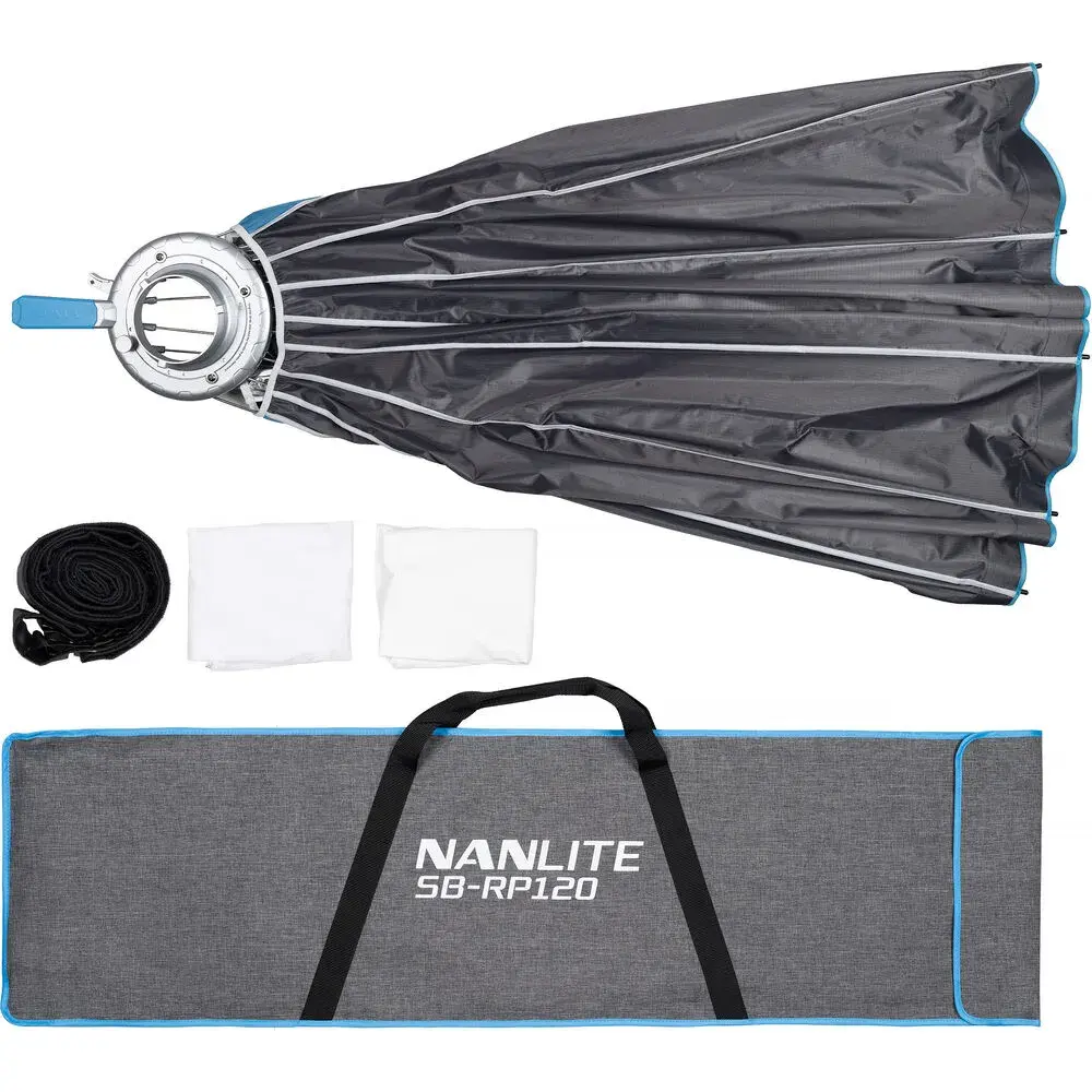 Nanlite Rapid 120 Parabolic Softbox เป็น Light Modifier ขนาดใหญ่ 47 นิ้ว (120 ซม.) ที่ออกแบบมาเพื่อการถ่ายภาพแฟชั่น การถ่ายกลุ่มใหญ่ และงานพอร์ทเทรตระดับมืออาชีพ ด้วยรูปทรงพาราโบลิกแบบ 16 ด้าน ที่ให้แสงที่นุ่มนวล มีทิศทางชัดเจน และลดการกระจายแสงไปรอบๆ ทำให้เหมาะสำหรับการถ่ายภาพที่ต้องการความแม่นยำในการควบคุมแสงและการครอบคลุมพื้นที่กว้าง