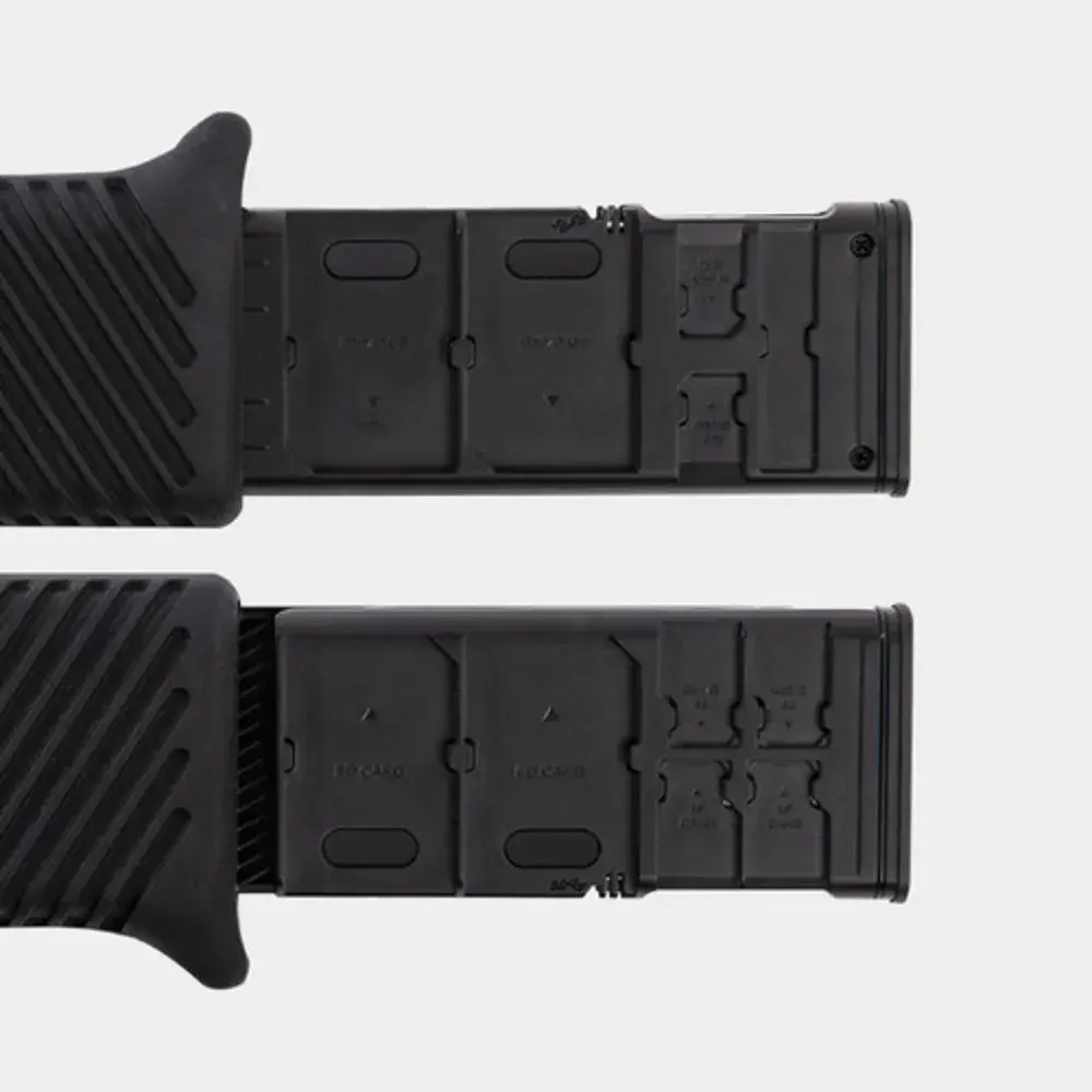 - ช่องเก็บการ์ด SD จำนวน 4 ช่อง สำหรับการ์ดหน่วยความจำที่ใช้กับกล้อง DSLR และ Mirrorless