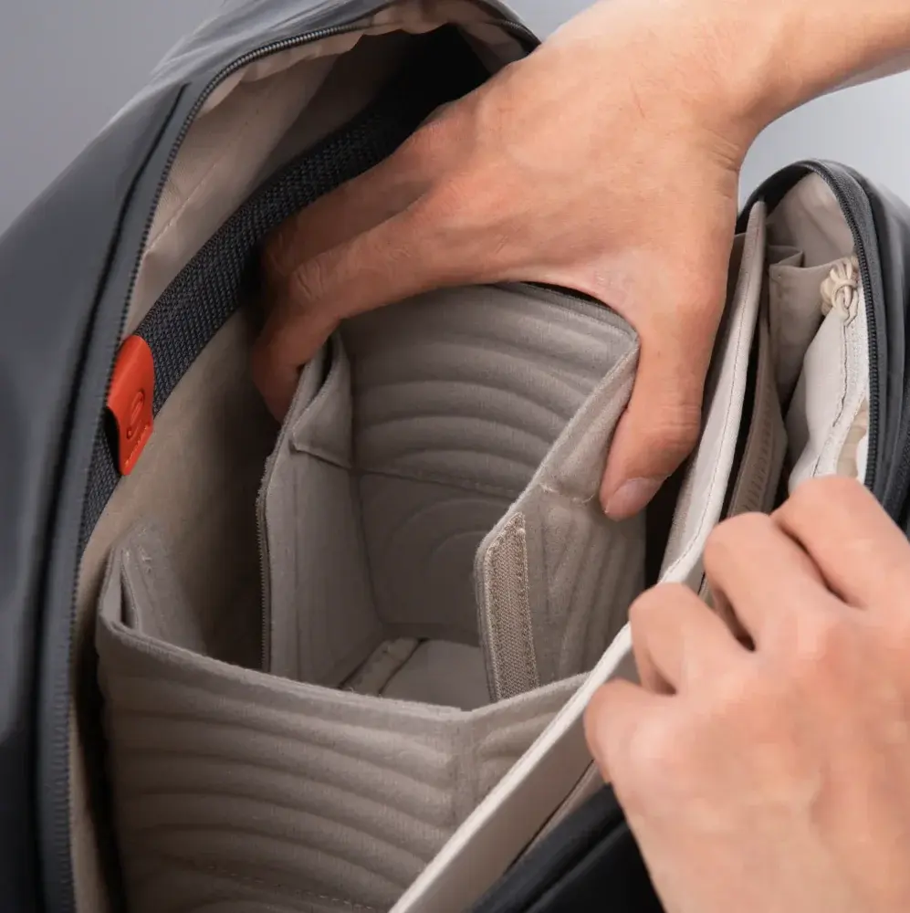 - มีช่องเก็บของหลากหลายขนาดสำหรับอุปกรณ์เทคโนโลยีและอุปกรณ์กล้อง