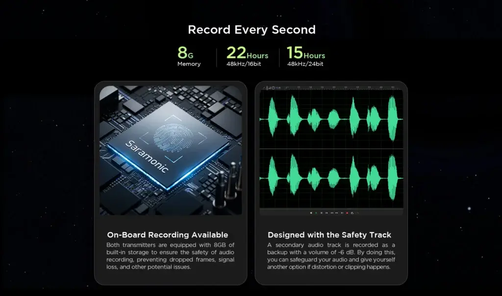 Safety Channel เป็นฟังก์ชันที่สำคัญมากสำหรับคนทำวิดีโอคอนเทนต์ เพราะช่วยให้เราได้เสียงที่มีคุณภาพดี แม้ในสถานการณ์ที่ไม่คาดคิด Saramonic Blink Me เป็นไมโครโฟนที่ทำให้การใช้ Safety Channel เป็นเรื่องง่าย และยังมีฟังก์ชันอื่นๆ ที่ช่วยให้การบันทึกเสียงมีคุณภาพดียิ่งขึ้น